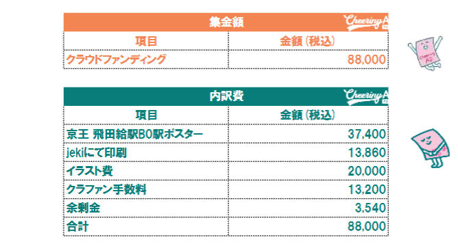 - ※6万円以上の余剰金が出た場合は、広告を追加するなど広告費に充てさせていただきます。