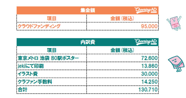 - ※6万円以上の余剰金が出た場合は、追加広告等を検討しております。