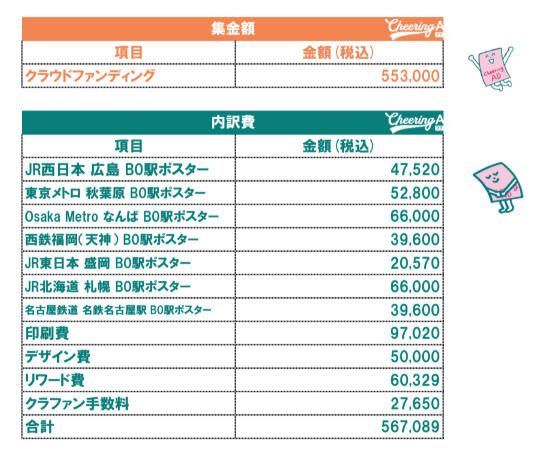 - ※6万円以上の余剰金が出た場合は、広告を追加するなど広告費に充てさせていただきます。