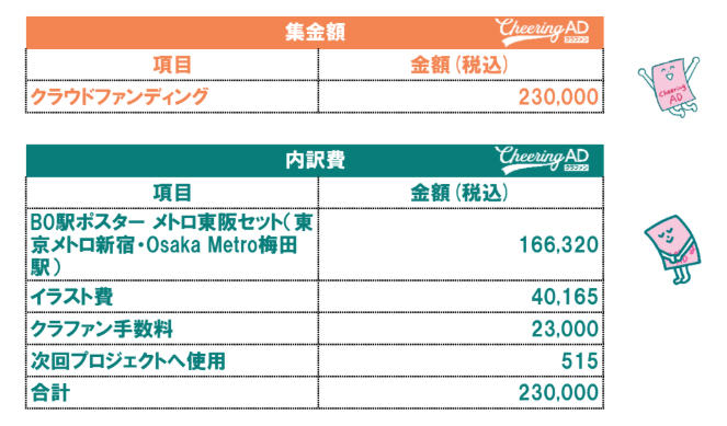 - ※6 万円以上の余剰金が出た場合は、広告を追加するなど広告費に充てさせていただきます。