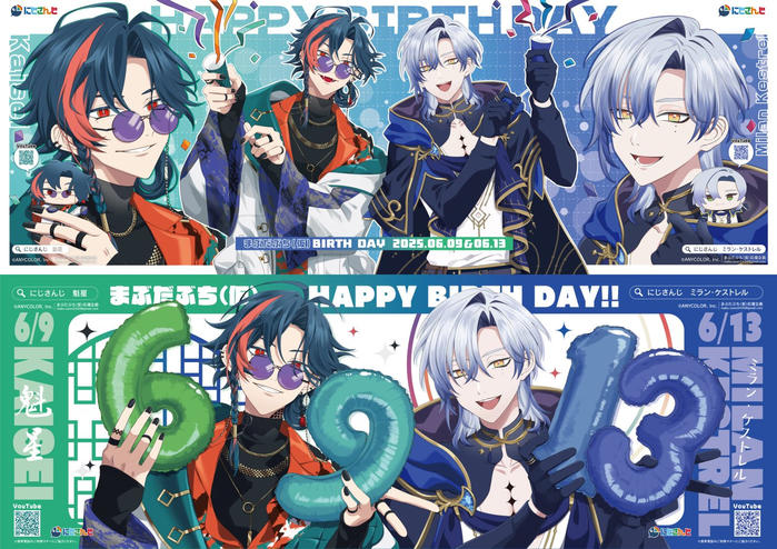 - 昨年に引き続き、まぶだぶち(仮)の魁星さん(6/9)ミラン・ケストレルさん(6/13)のお二人のお誕生日を2枚連貼りの大きい誕生日広告でお祝いするために立ち上げました。