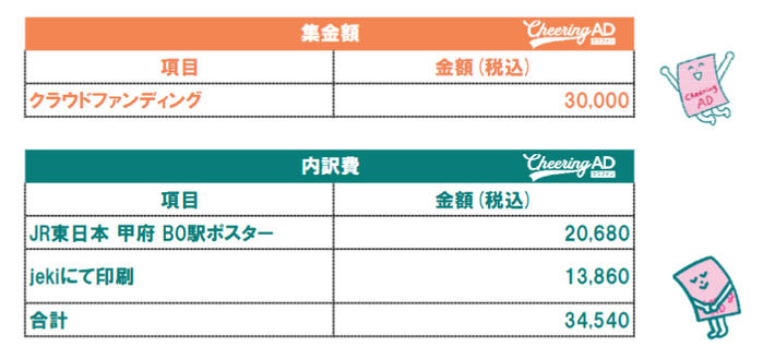 ※6万円以上の余剰金が出た場合は、別途広告を追加するなど広告費に充てさせていただきます。