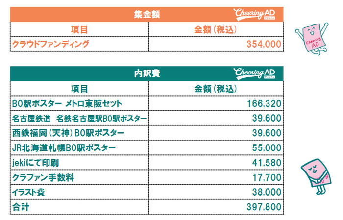 - ※6万円以上の余剰金が出た場合は、広告掲出地域を追加するなど広告費に充てさせていただきます。