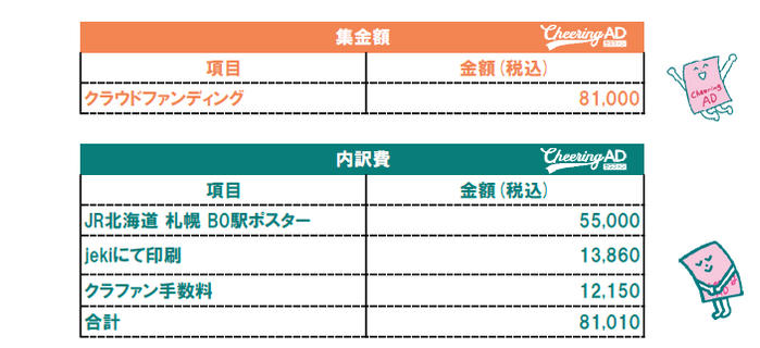 - ※6万円以上の余剰金が出た場合は、広告を追加するなど広告費に充てさせていただきます。