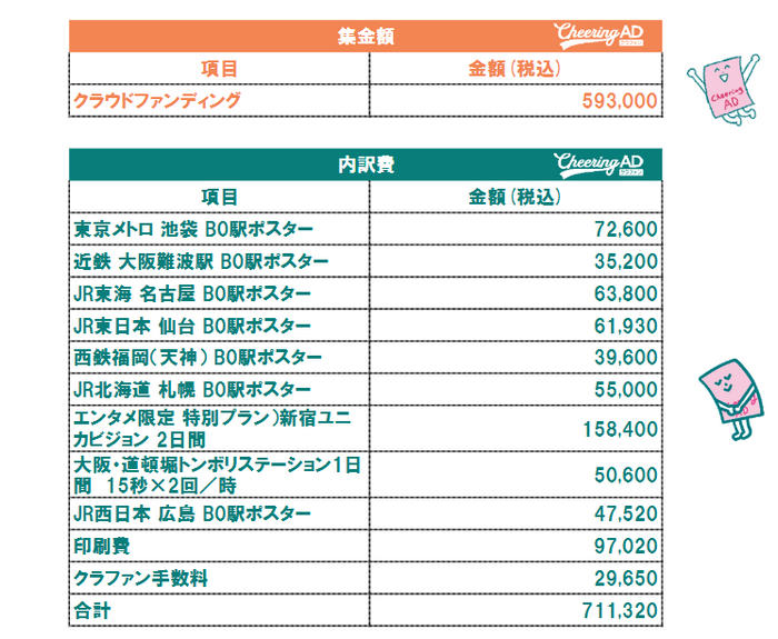 - ※6万円以上の余剰金が出た場合は、広告を追加するなど広告費に充てさせていただきます。