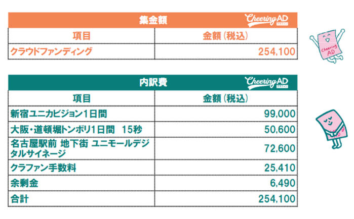 - ※6万円以上の余剰金が出た場合は、広告を追加するなど広告費に充てさせていただきます。