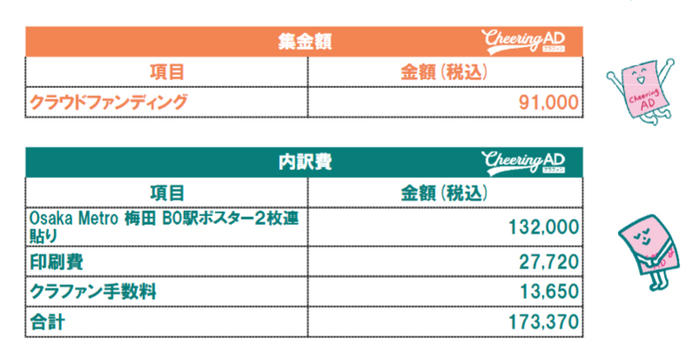- ※6万円以上の余剰金が出た場合は、広告を追加するなど広告費に充てさせていただきます。