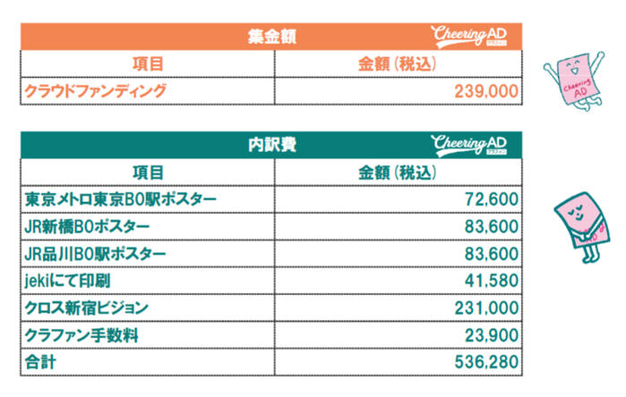 - ※6万円以上の余剰金が出た場合は、広告を追加するなど広告費に充てさせていただきます。